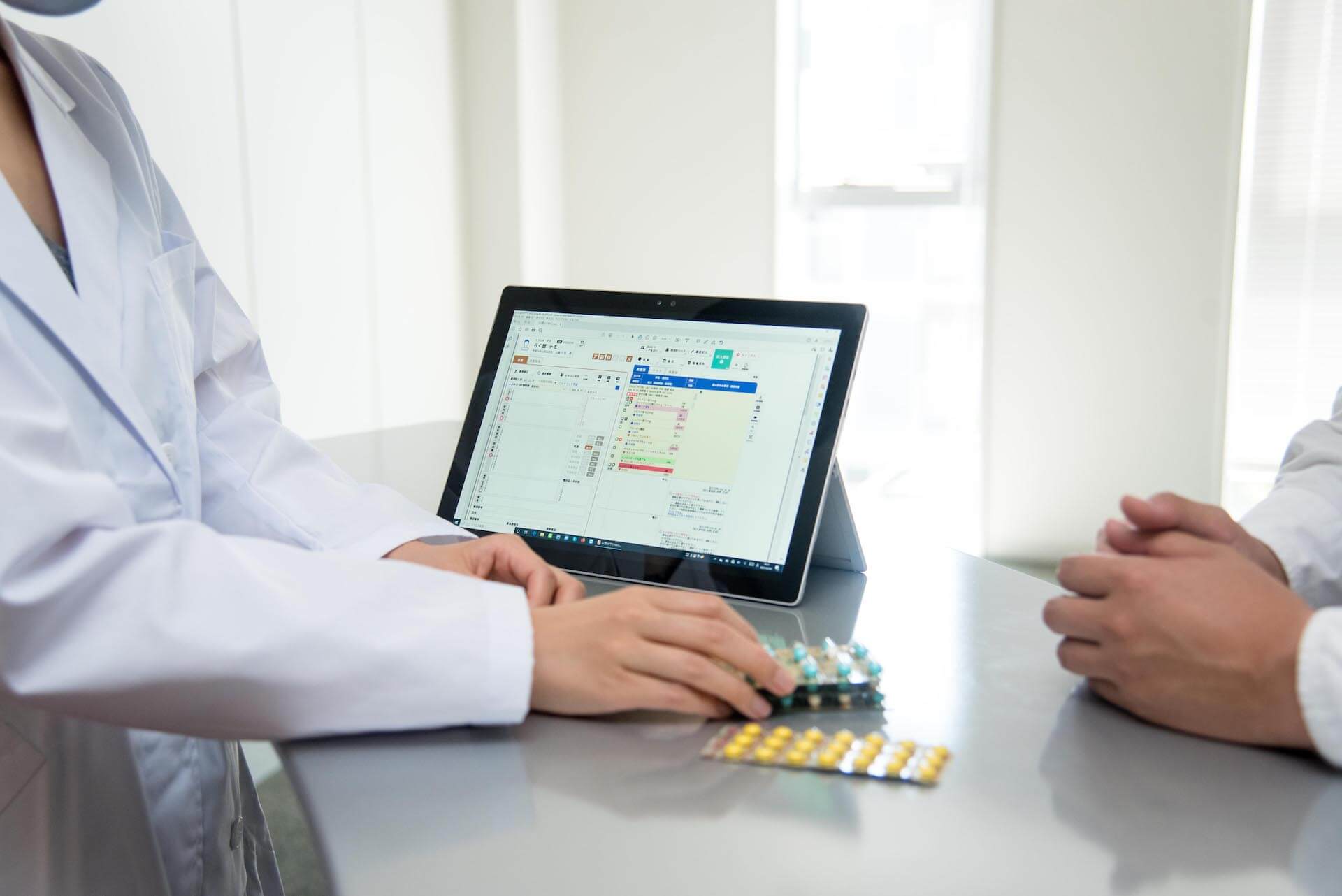 タブレットPCを使用するため、設置場所を固定する必要はありま せん。「投薬カウンターでしか薬歴が見れない」などの問題を解決します。在宅訪問に対応されている医療機関様では、らく歴をそのまま 持ち出すことも可能です。